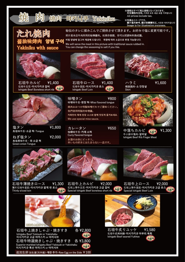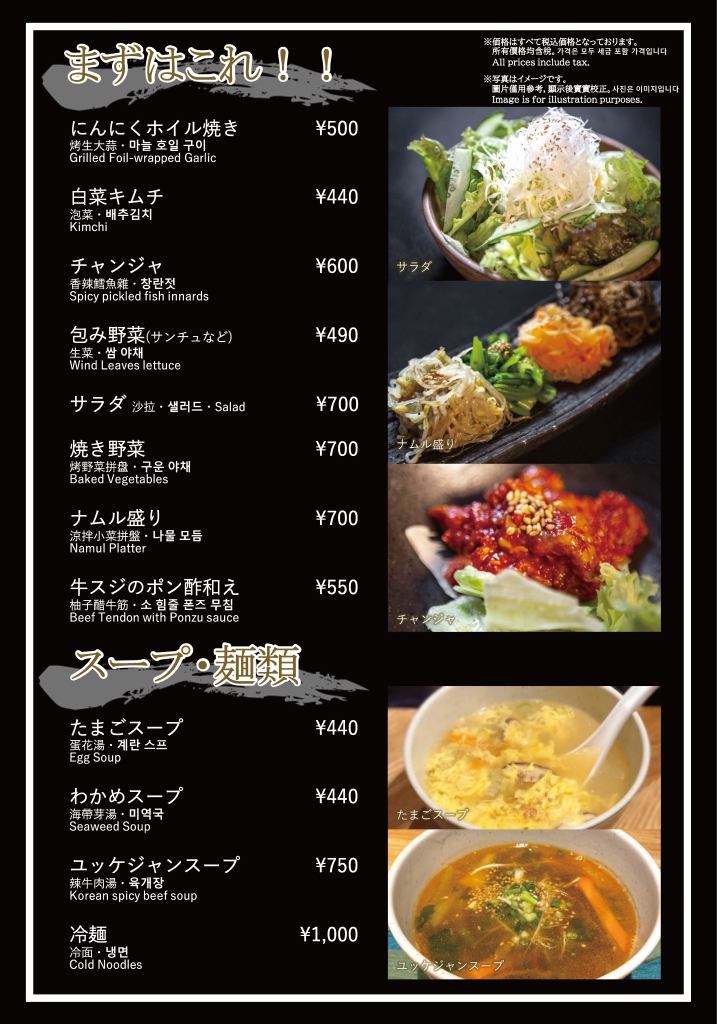 焼肉おおつか 本店 フードメニュー、ドリンクメニュー