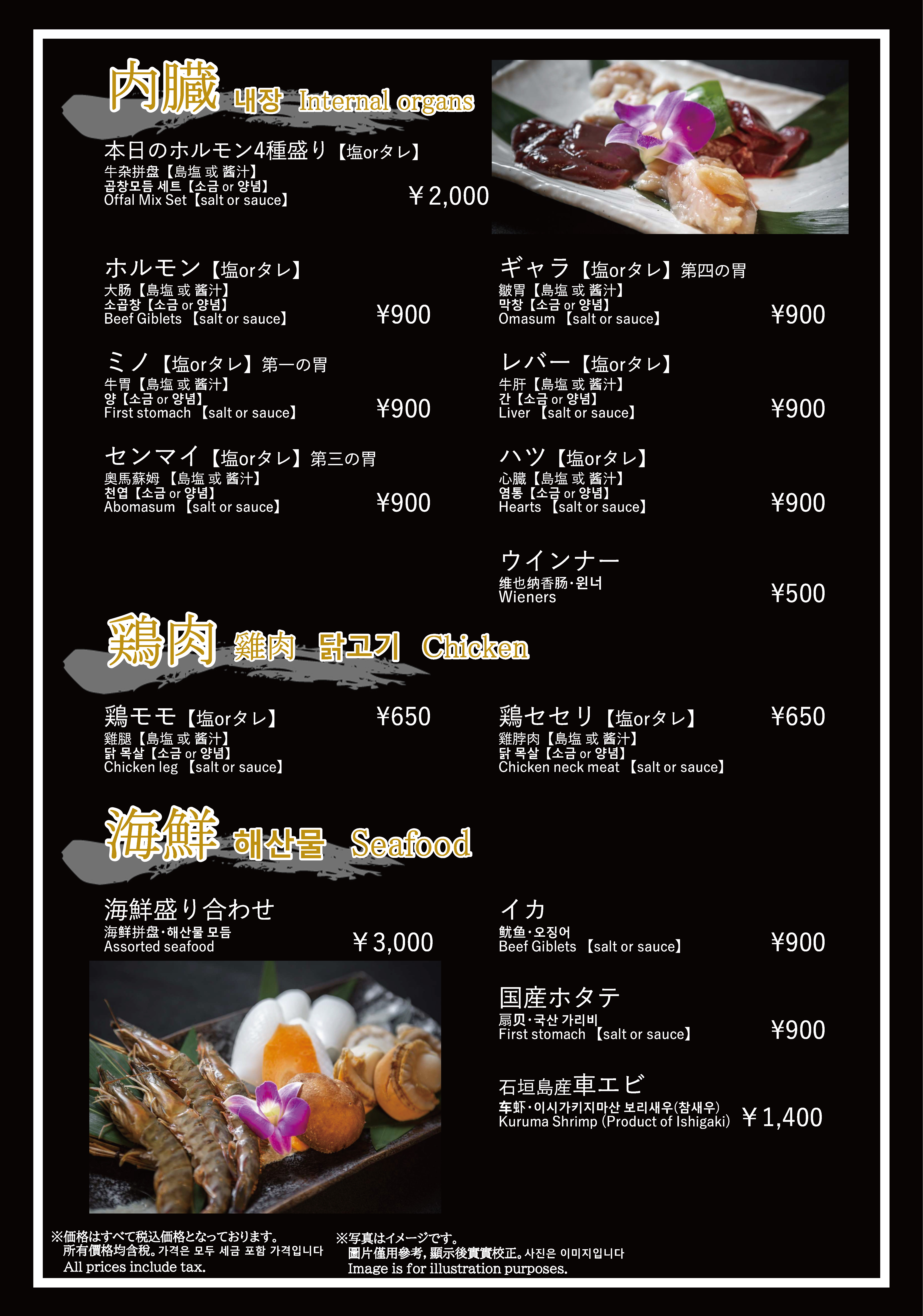 焼肉おおつか 本店 フードメニュー、ドリンクメニュー