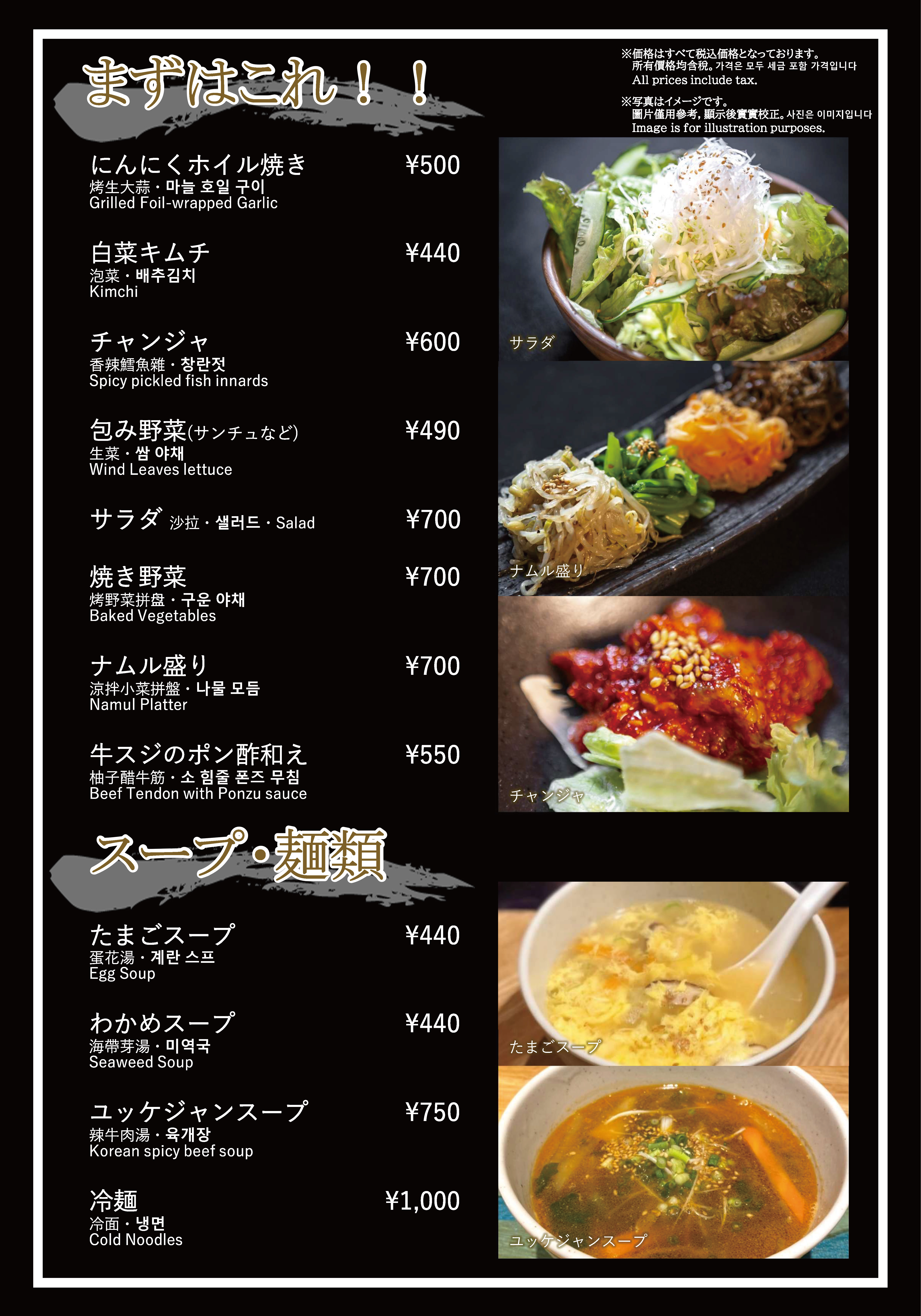 焼肉おおつか 本店 フードメニュー、ドリンクメニュー