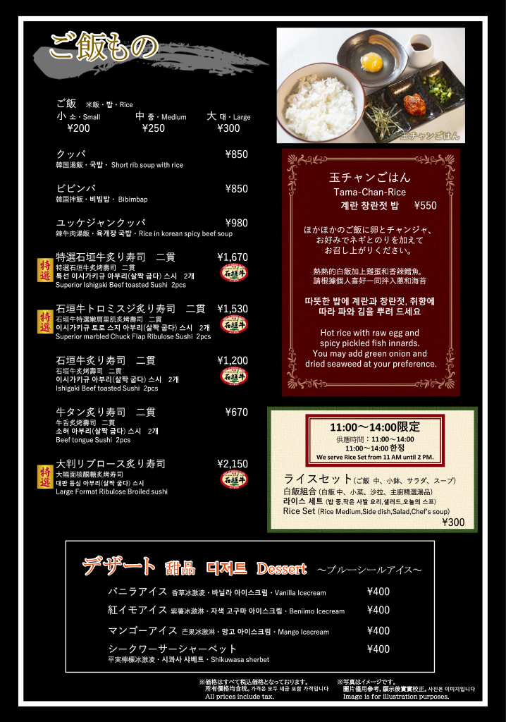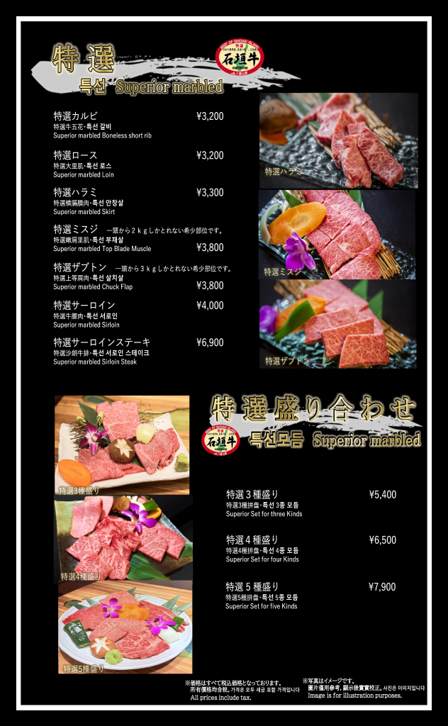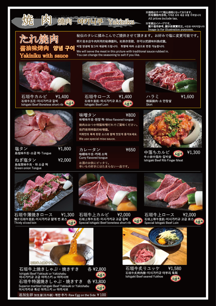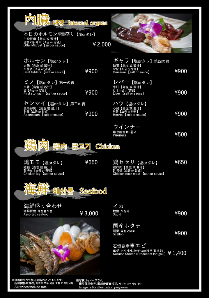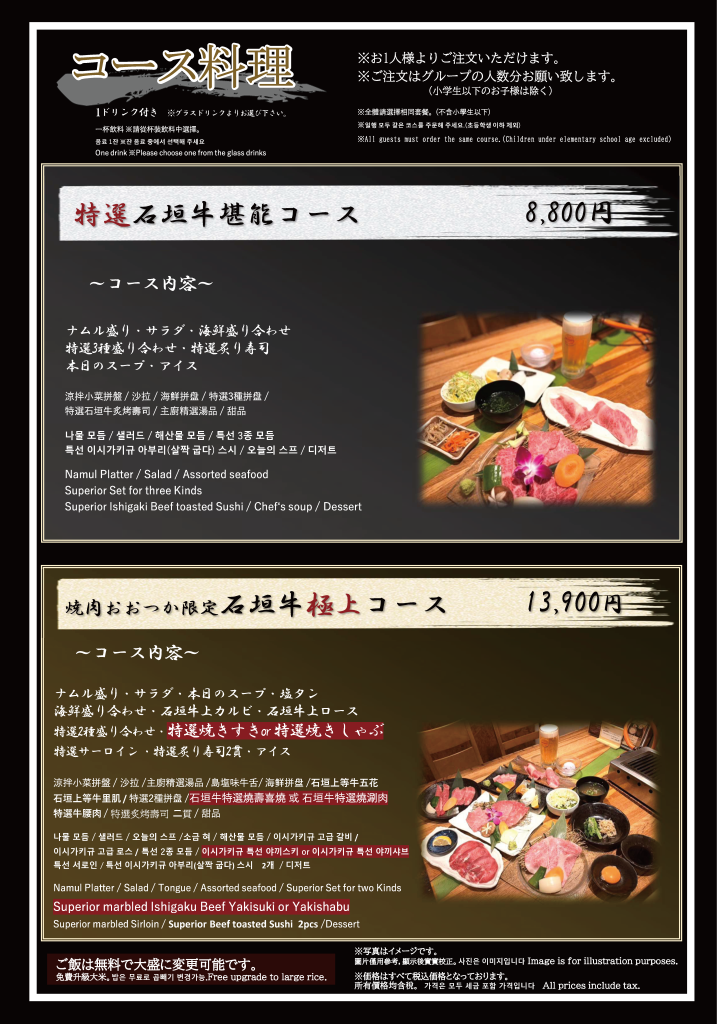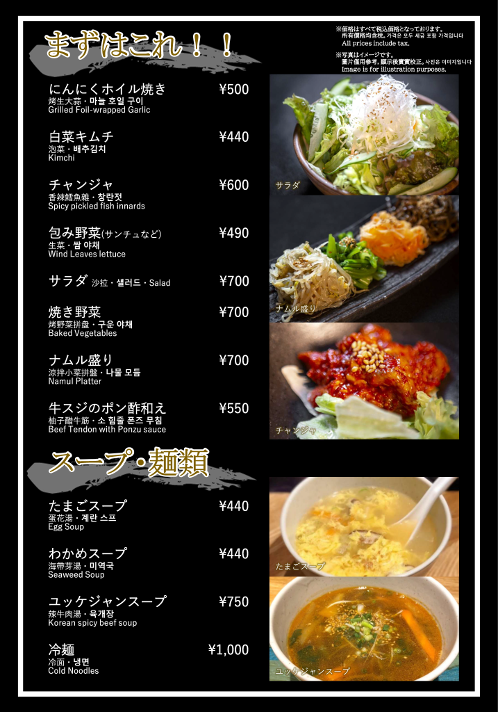 焼肉おおつか 本店 フードメニュー、ドリンクメニュー