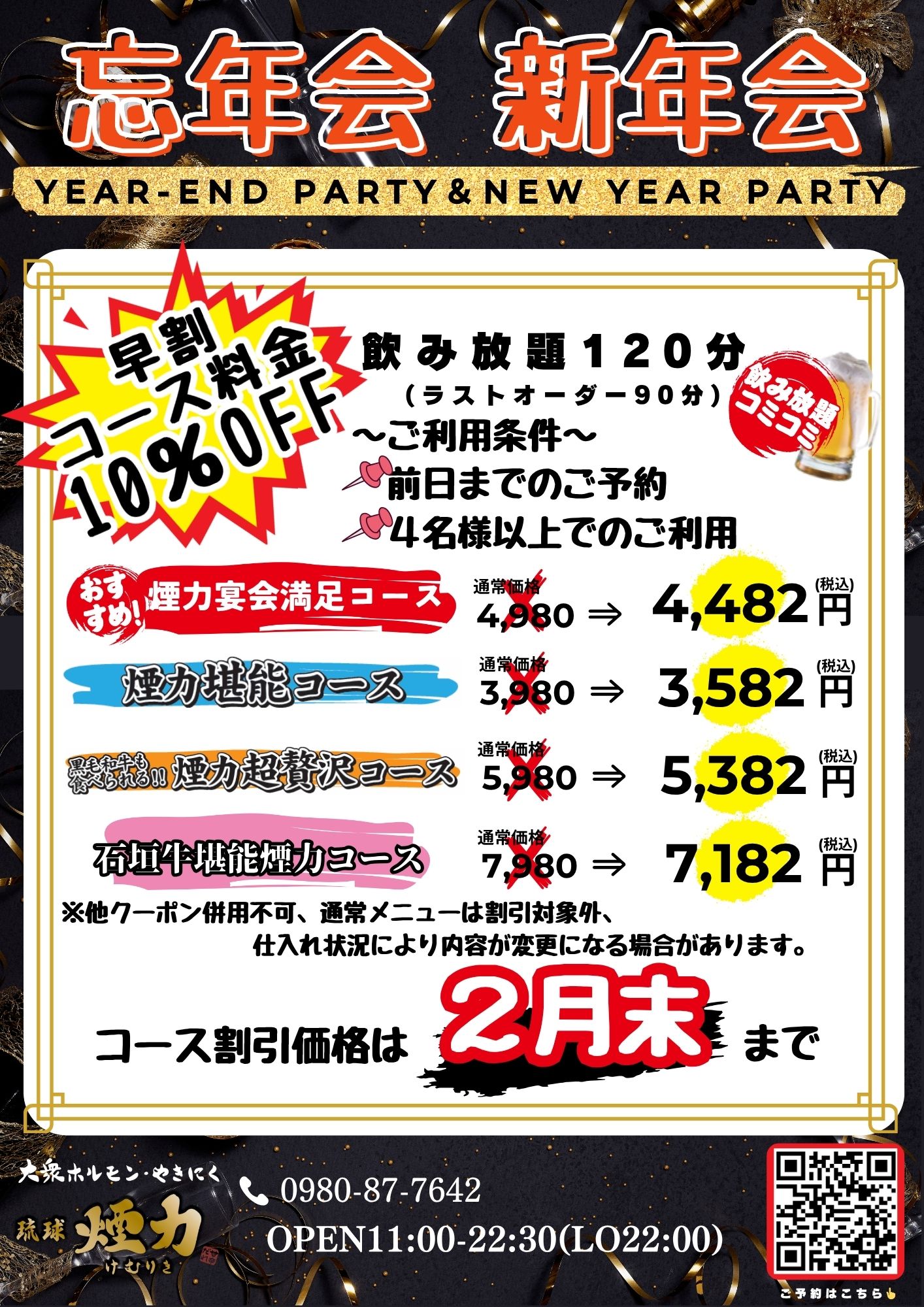 【琉球煙力】忘新年会早割コース受付開始しました♪